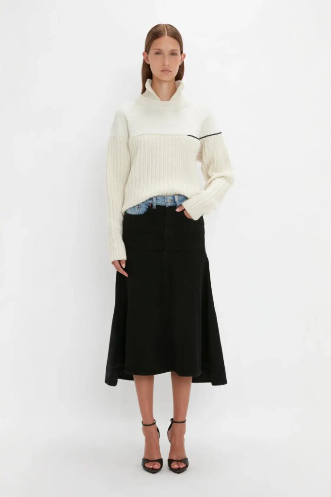- High neckline complete with ribbed hemline